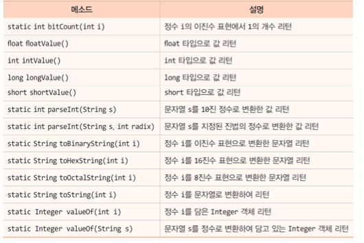 • 위 메소드는 Integer 클래스의 주요 메소드이다.