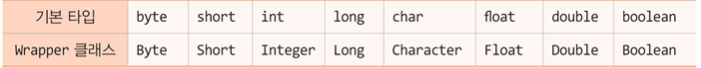 • 자바의 기본 타입을 클래스화한 8개 클래스