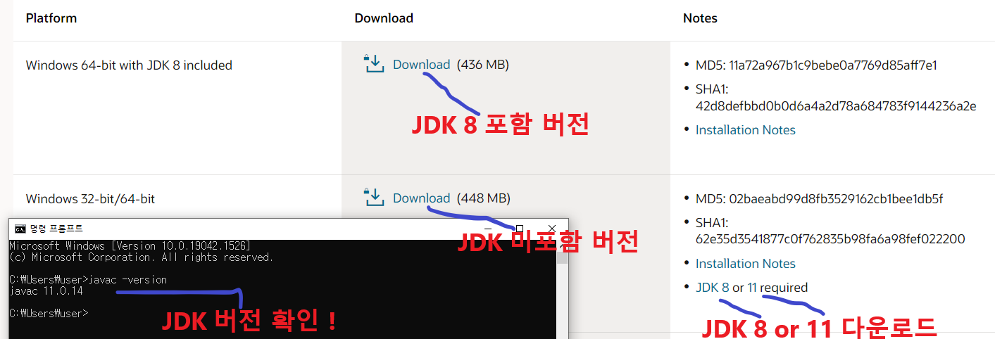 Jdk8을 쓰고있으면 위에 포함 버전으로 다운로드 해도 되고,