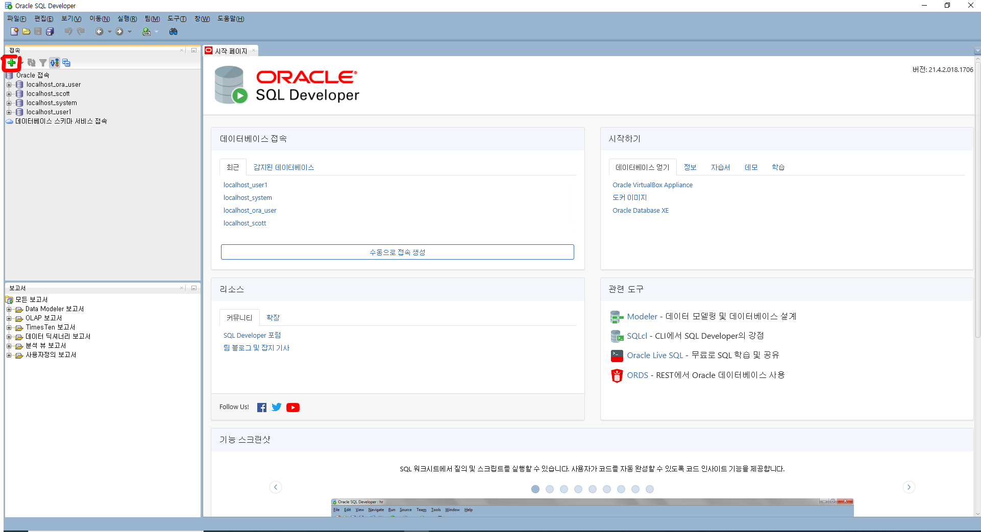 다운로드 후 압축 풀고 sqldeveloper 실행 !!