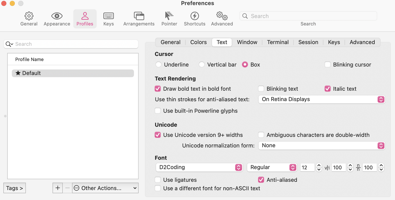 iTerm2의 장점은 더 다양한 플러그인과 자체 커스터마이징 기능으로