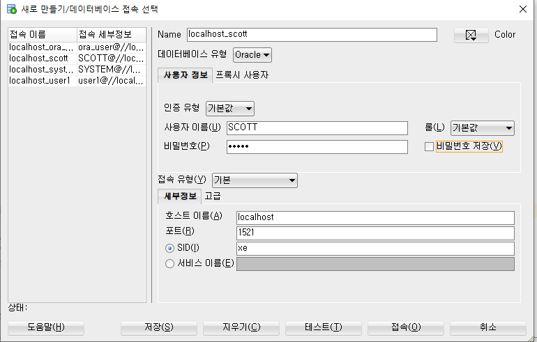 Express Edition 버전은 scott이 등록되어 있지 않기 때문에 따로 등록을 해줘야 한다.