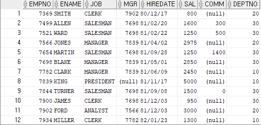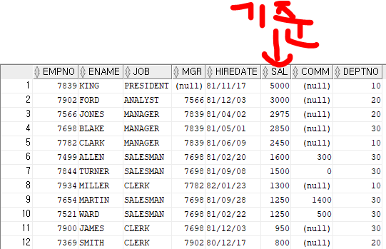 order by sal desc; -- sal을 기준으로 모든 테이블 정렬! 내림차순