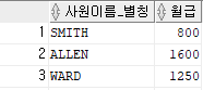 sal "월급" -- 컬럼 뒤에 바로 as 제외하고 ( " " )쌍 따음표로 묶어주면서 별칭 설정 가능