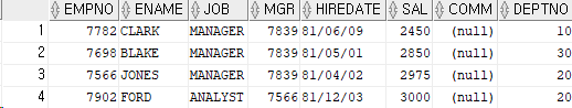 where job = 'MANAGER' or job='SALESMAN' or job='CLERK';