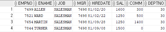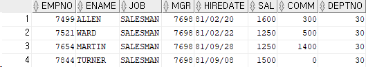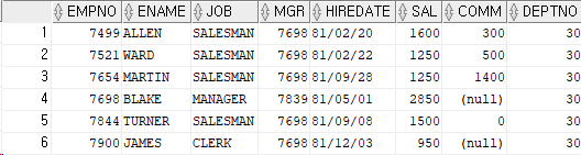 where deptno=30 -- deptno가 30인 모든 컬럼 출력