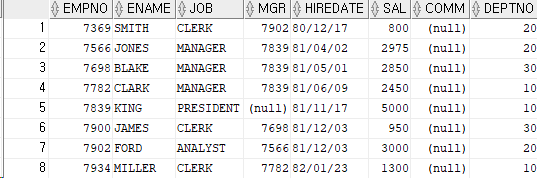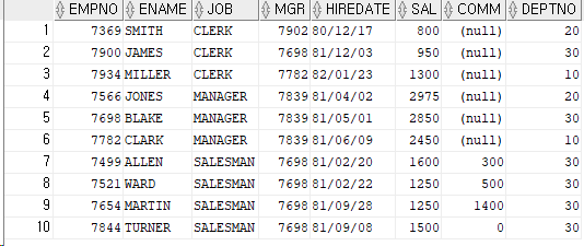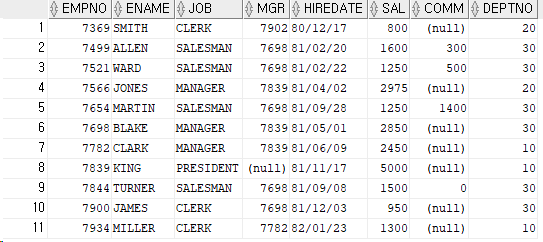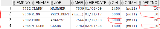 select * from emp --sal이 3000이 아닌 행 출력!