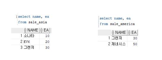 각각 데이터를 갖고 있는 sale_asia, sale_america 테이블이 있다.