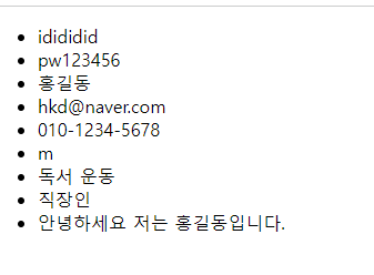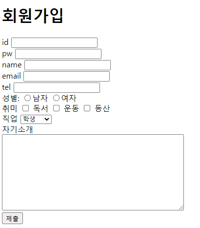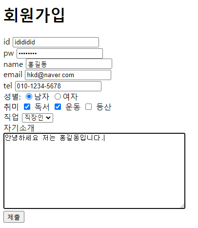 취미 <input type="checkbox" name="hobby" value="독서"> 독서