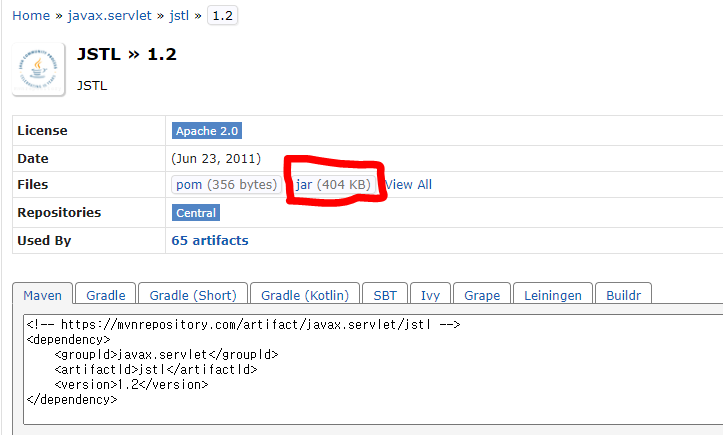 jstl 다운로드 링크 : https://mvnrepository.com/artifact/javax.servlet/jstl/1.2