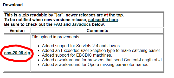 cos 다운로드 링크 : http://servlets.com/cos/