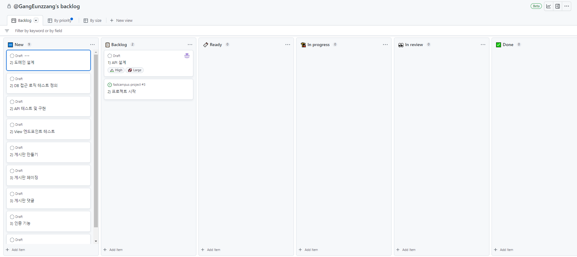 Backlog -> 할일 ! (우선순위 관리 가능)