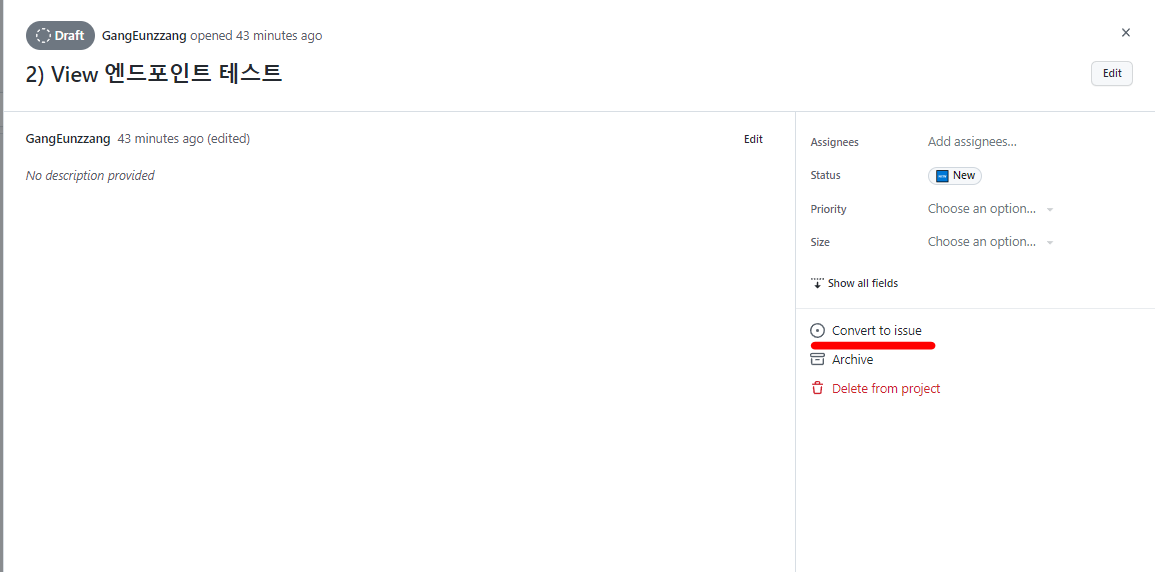 Convert to issue를 클릭하고