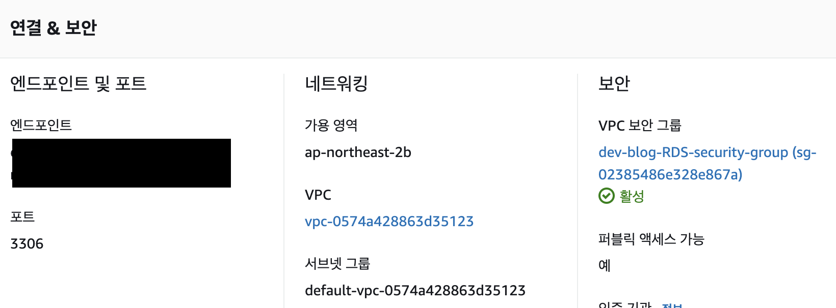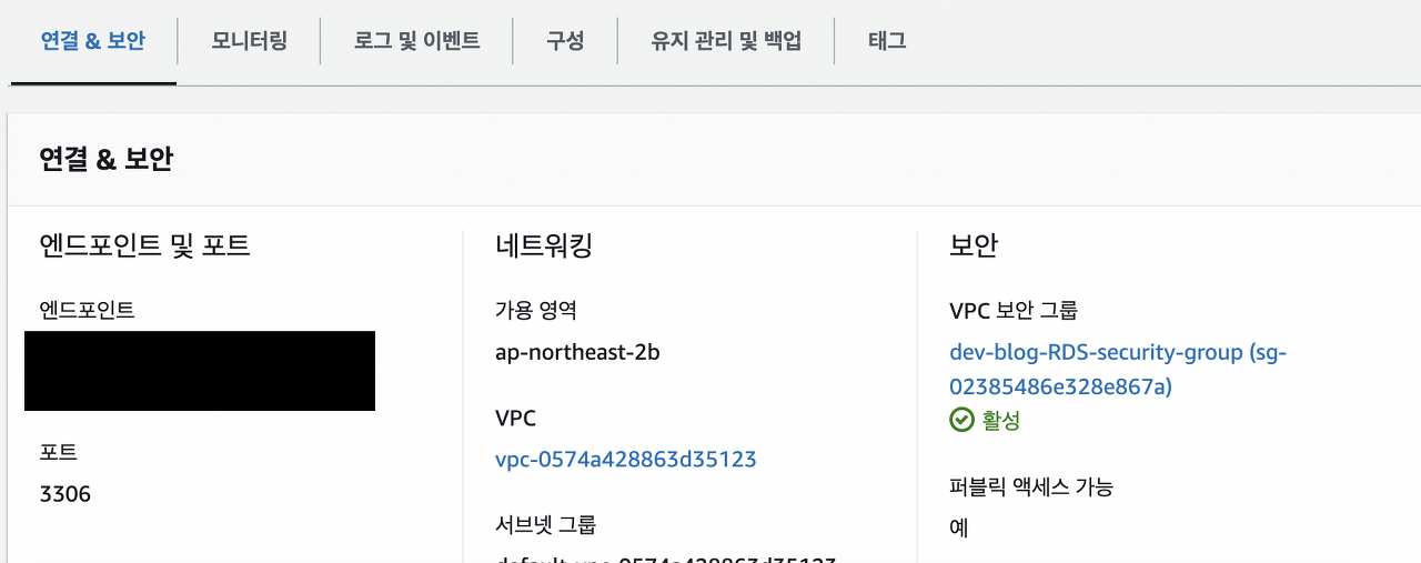 이 엔드포인트를 알아야 RDS에 접근할 수 있다.
