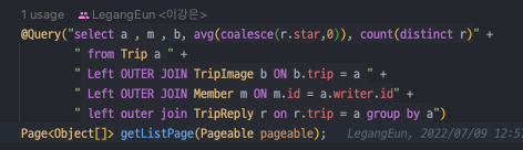 무슨 쿼리인줄 알기도 힘들뿐더러 반환값도 Object[]로 반환하고 있었다.
