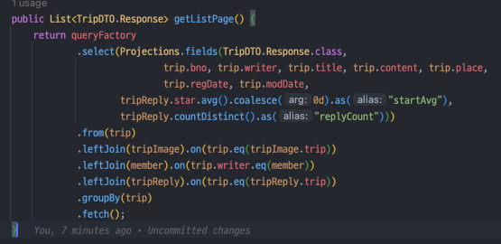 List<Tuple> listPage = tripQueryRepository.getListPage();
