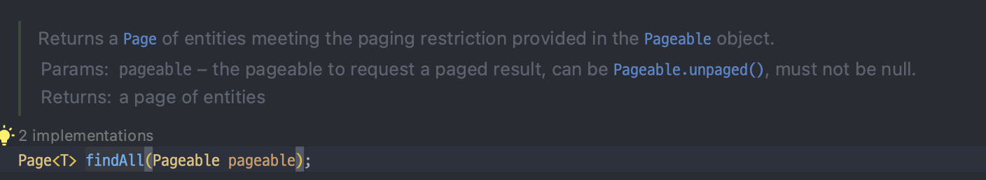 findAll 메서드를 사용하고 우리는 Pageable만 만들어서 넘겨주면 되는것이다.